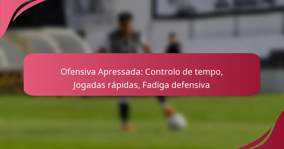 A ofensiva de pressa é uma estratégia dinâmica no futebol que acelera o ritmo de jogo, permitindo que as equipas executem jogadas rápidas e apliquem pressão contínua nas defesas adversárias. Ao controlar o tempo, esta abordagem procura explorar a fadiga defensiva e criar desvantagens vantajosas, melhorando assim as oportunidades de marcar e mantendo o ímpeto ofensivo.