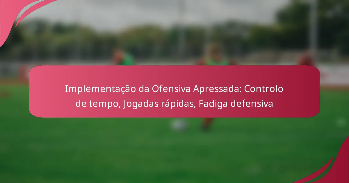 A ofensiva de pressa é uma estratégia dinâmica no futebol que enfatiza um ritmo rápido de jogo para manter as defesas em alerta. Ao minimizar o tempo entre jogadas, as equipas podem explorar as fraquezas defensivas e induzir fadiga, criando, em última análise, oportunidades de pontuação vantajosas. A implementação eficaz envolve chamadas de jogadas rápidas e comunicação eficiente, permitindo que as ofensivas mantenham o controle sobre o ritmo do jogo.